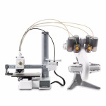 Bambu Lab A1 Mini Combo posiada pojedyncze ramię na którym umieszczono ekstruder wraz z głowicą. Głowica została umieszczona na szynach. Podobnie zamocowany jest stół roboczy. Ekstruder wykonano z metalu - jest zatem trwały.