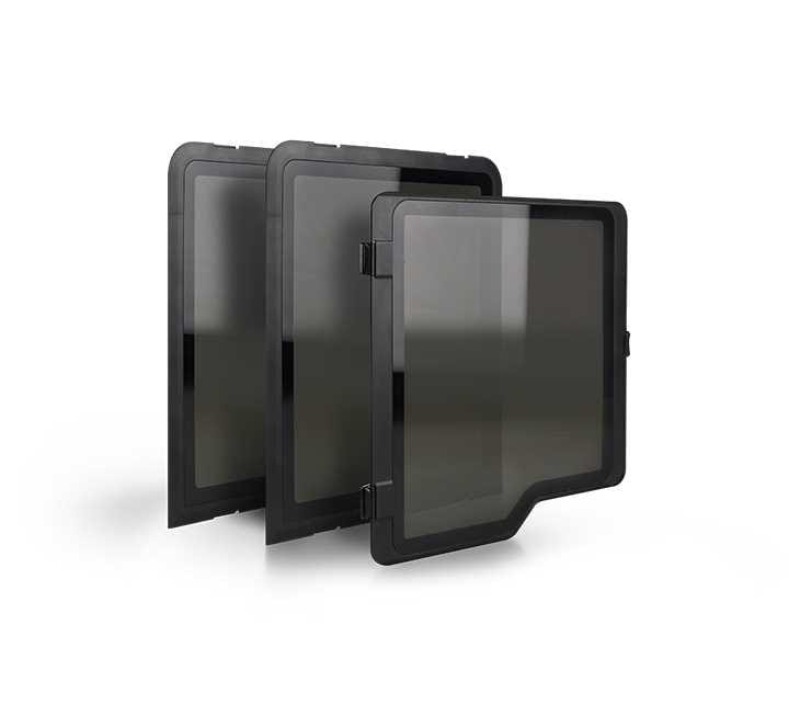 The Side Covers protect the prints against external factors. They keep a stable temperature inside the printing area, and as a result lower the risk of warps and cracks on printed models. The set consists of two side covers, one front cover, magnets and hinges. The front panel is fixed to the housing with two hinges and closed by hidden magnets, whereas the side panels snap on.