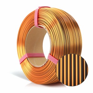 Filament ReFill PLA Magic Silk to materiał przeznaczony do druku 3D za pomocą technik FDM/FFF/LPD/LPD Plus. Tworzywo zachwyci niejedną osobę swoimi walorami wizualnymi. To dwukolorowy filament. Dwie filamentowe żyłki różniące się kolorami połączono, uzyskując intrygujący produkt do druku 3D. Barwami składowymi materiału są: